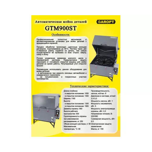 Теги: Автоматическая мойка деталей GAROPT GTM900ST (900мм), GTM900ST, Установки для мойки деталей