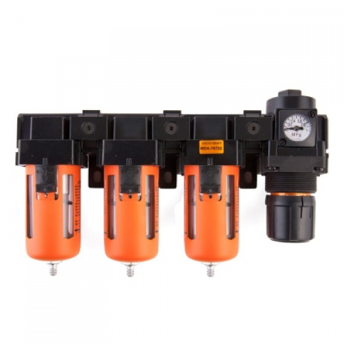 - Трехступенчатая очистка для удаления частиц, воды и масла, продлевающая срок службы пневмоинструмента.