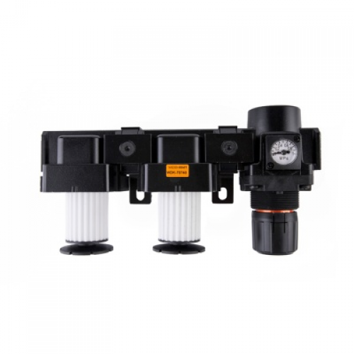 Блок подготовки воздуха WIEDERKRAFT WDK-70740 (1/2") представляет собой комбинированное устройство для очистки и регулировки сжатого воздуха, подаваемого к пневмоинструменту и оборудованию. Оно удаляет механические примеси, влагу и масло, обеспечивая стабильную работу системы. Блок состоит из двух масловлагоотделителей, регулятора давления с манометром и монтажных скоб.