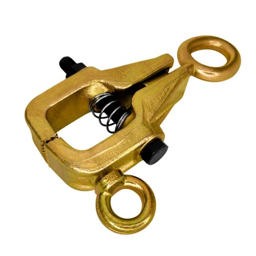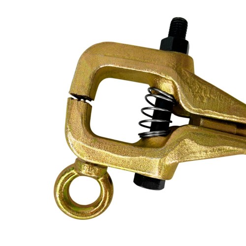 - Двухстороннее крепление: держатель позволяет обеспечить тягу кузовных элементов в двух направлениях. Болтовой коробчатый зажим приспособления гарантирует надежное удержание и распределение усилия, что позволяет применять тяговую силу до 2000 кг под углом и до 3000 кг по прямой. Это обеспечивает возможность качественного рихтовки даже при сложных деформациях кузова.