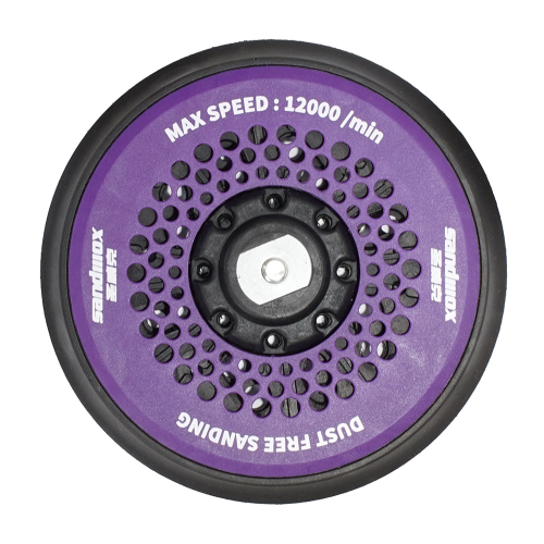Диск-подошва SANDWOX BH-65 (150мм) предназначена для эксцентриковых шлифмашинок и используется для установки абразивных дисков диаметром 150 мм. Она обеспечивает надежную фиксацию абразива благодаря креплению VELCRO и эффективно работает с эксцентриковым ходом 5 мм, поддерживая высокую скорость вращения до 12000 об/мин. Продукт отличается средней жесткостью, что делает его универсальным для шлифовальных работ на различных поверхностях, таких как металл, дерево или ЛКП автомобилей, с оптимальным удалением пыли благодаря системе Multiholes.