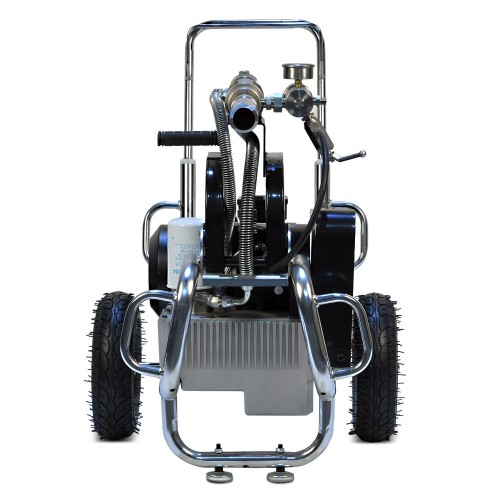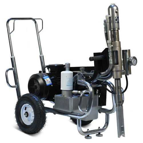 Модель работает от розетки 220B и обладает высокой производительностью (10 л/мин); позволяет присоединять до 3 малярных постов и подавать материал на высоту до 90 метров.