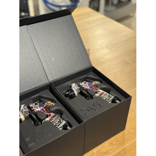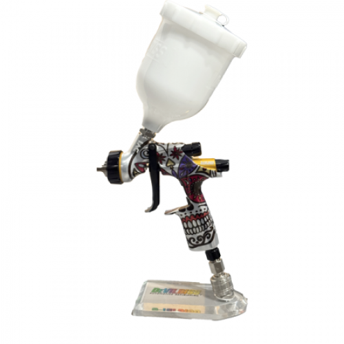 Краскопульт DeVilbiss DV1-C-000-13WRI-C1+ (1,3мм) представляет собой профессиональный пневматический инструмент с технологией HVLP, предназначенный для высококачественного нанесения лаков. Эта лимитированная версия Calavera отличается стильным дизайном в виде сахарного черепа и оснащена форсункой 1,3 мм для идеального распыления прозрачных покрытий. Он обеспечивает равномерный тонкий туман, минимизирует расход материала и подходит для автопокраски и других финишных работ.