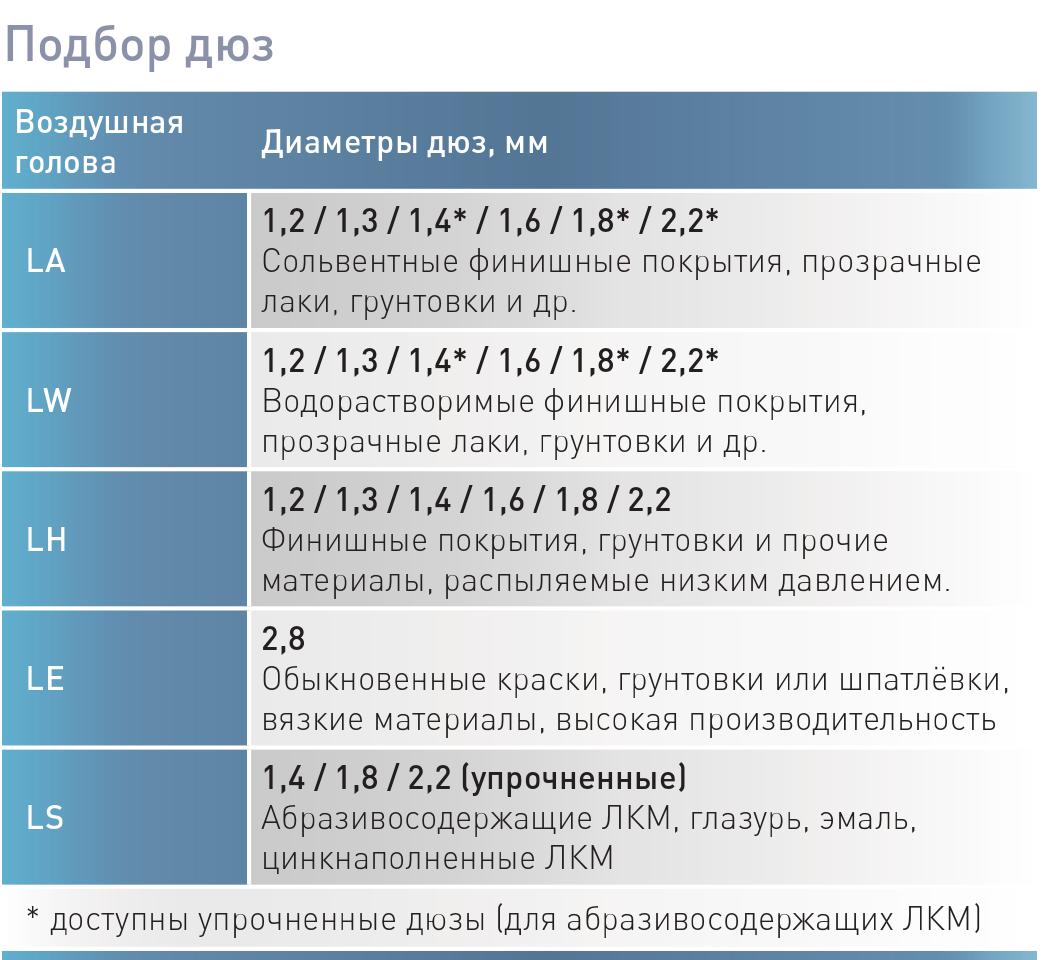 Керамика: применение глазурей и эмалей содержащих абразивные частицы. Краскопульты с воздушными головками LE и LS, поставляются только с закаленной дюзой и иглой.