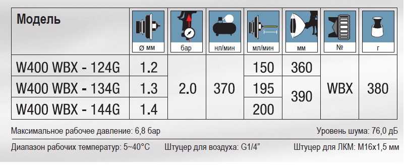 Модель Iwata W-400 WBX можно рекомендовать автосервисам и производствам, где скорость работы ставится на первое место, при этом за качество распыления можете не переживать: оно будет недостижимо для конкурентов.