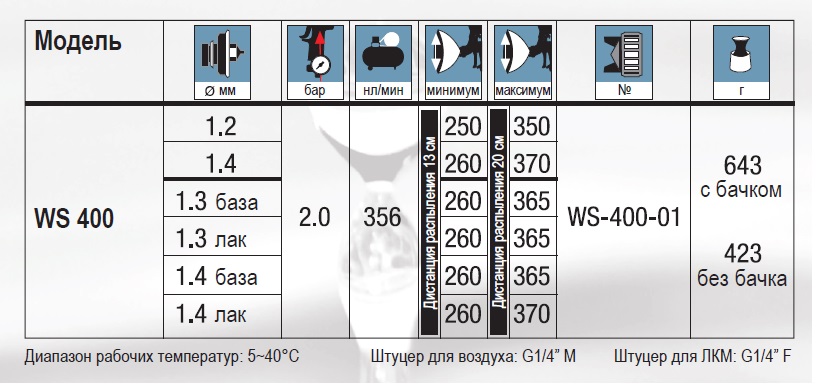 Описание краскопульта Iwata WS-400 SuperNova 1.4 Base