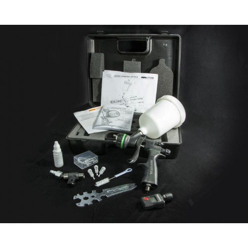 Система воздушного распыления HVLP: (High Volume Low Pressure) большой объем, низкое давление — это вид краскопультов, которые имеют специальное строение внутренних воздушных и распыляющих каналов ЛКМ при низком давлении сжатого воздуха. С ужесточением норм и законов по защите окружающей среды, в начале 80-х годов была разработана новая, более экологичная система распыления HVLP. Основная проблема заключалась в том, что во время покраски деталей конвенциональным краскораспылителем традиционной серии большое количество лакокрасочного материала распылялось в окружающую среду, т.к. конвенциональные краскопульты имели низкий коэффициент переноса ЛКМ на окрашиваемую поверхность. За счет низкого давления в распыляющей головке (HVLP – 0,7 бар), краскораспылитель работает с минимальным количеством опыла и туманообразования. Коэффициент переноса продукта свыше 65%. Одним из основных преимуществ краскораспылителя Walcom Genesi CARBONIO 360 HVLP является низкое потребление сжатого воздуха – максимум 360 л/мин, что примерно на 20-25% ниже, чем у конкурентов, а также максимальная экономия наносимого материала.