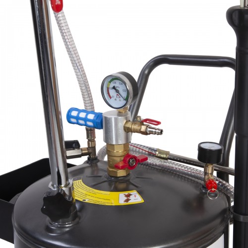 Маслосменная установка WIEDERKRAFT WDK-89292 (40л) предназначена для сбора отработанного масла при помощи вентури-вакуумной вытяжной системы с двигателей, коробок передач и т. п. или откачки масла через отверстие для щупа. Воронка объемом 16 литров регулируется по высоте. Через воронку отработанное масло попадает в сливной бачок, объем которого составляет 40 литров.