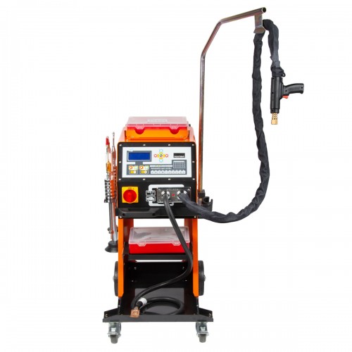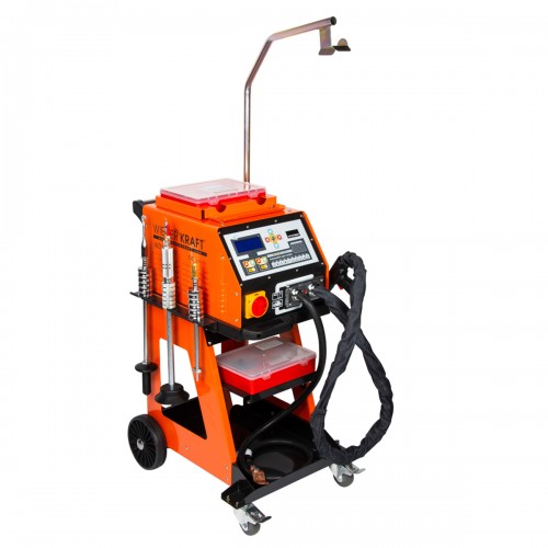 Многофункциональный споттер WIEDERKRAFT WDK-9000 (380В,22кВА,57А,5800А) предназначен для профессиональных кузовных работ по выравниванию металлических поверхностей и односторонней точечной сварки. Аппарат оснащен интуитивным LCD-дисплеем и электронным управлением для точной настройки параметров. Он подходит для автосервисов благодаря высокой мощности и мобильности с транспортировочной тележкой.