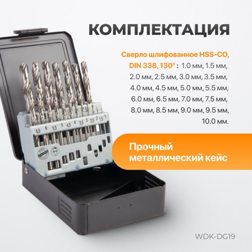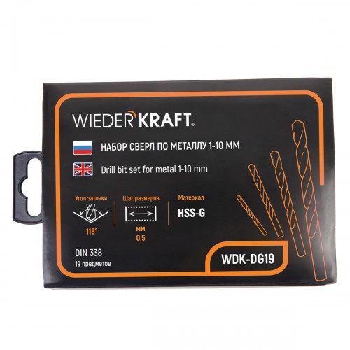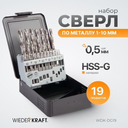 Набор сверл по металлу WIEDERKRAFT WDK-DG19 (1-10мм)