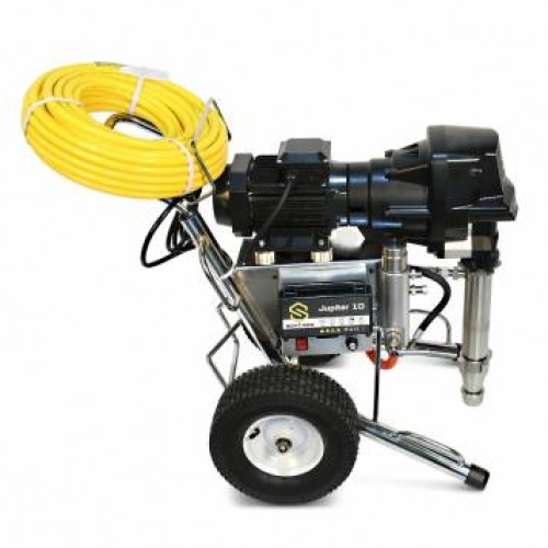 Безвоздушный окрасочный аппарат SCHTAER JUPITER 10 предназначен для распыления любых текстурных материалов: красок средней и высокой вязкости, огнезащитных составов, гидроизоляционных материалов, мастик, антикоррозионных красок, цинконаполненных материалов, шпатлевок, эмалей, грунтов, и других материалов, пригодных для нанесения через поршневой безвоздушный окрасочный агрегат. Работает от электрического мотора 220 вольт