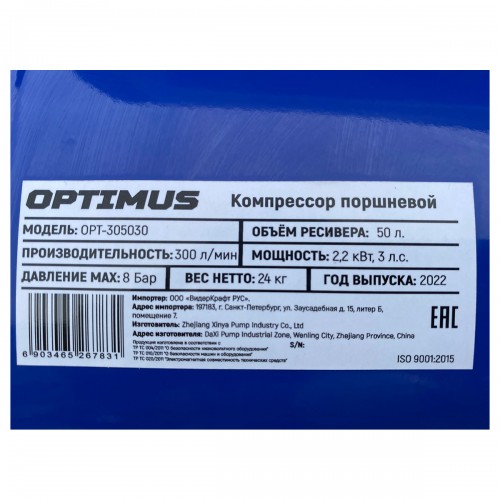 Масляный поршневой компрессор Optimus OPT-302430 это компактный аппарат с производительностью 3..