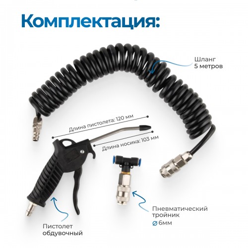 OPT-7005 Пистолет продувочный 10 бар, шланг и фитинг-переходник в комплекте