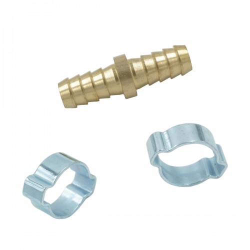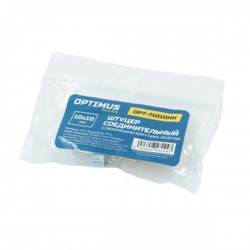 OPT-71010HH Штуцер соединительный латунный елочка-елочка 10 ? 10 мм, 2 обжимных оцинкованных стальных хомута