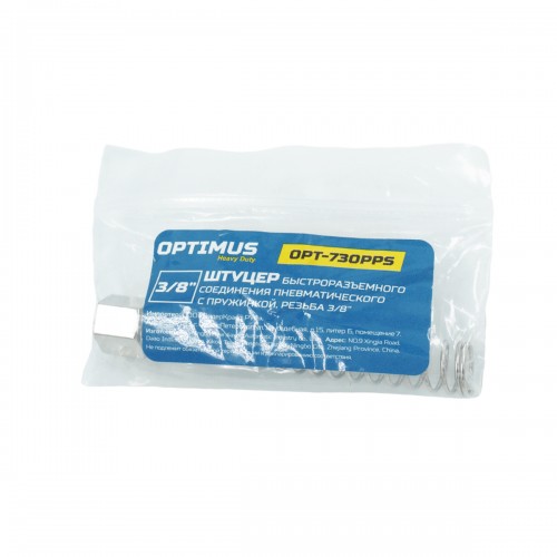 OPT-730PPS Штуцер быстроразъемного соединения пневматического с пружинкой, резьба 3/8"