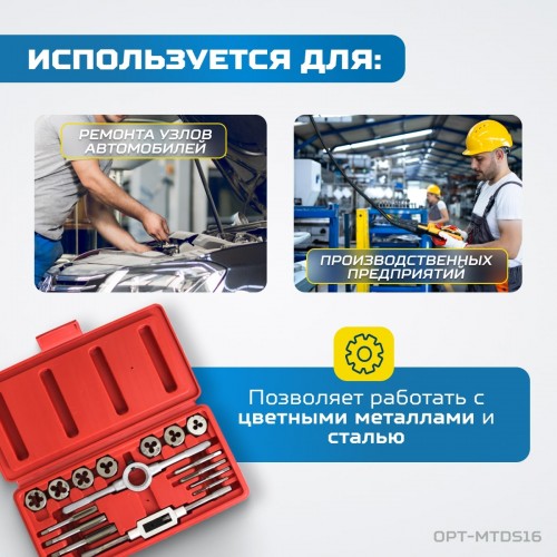 OPT-MTDS16 Набор метчиков и плашек М3-М12, метрическая резьба, 16 предметов