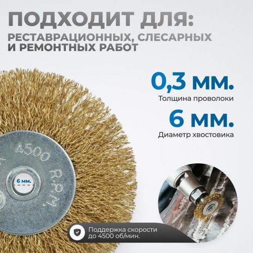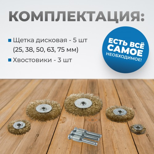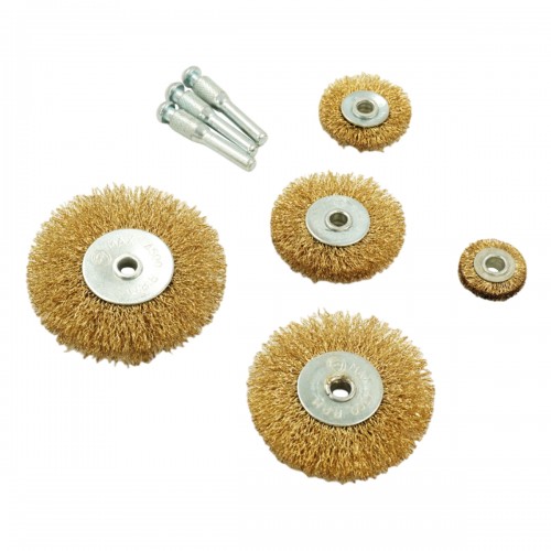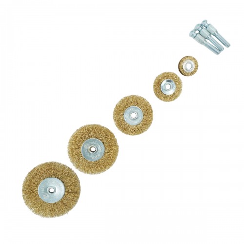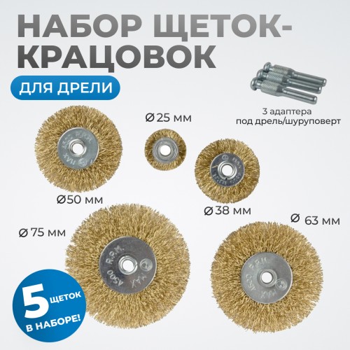 OPTIMUS-BR110 Щетки по металлу для дрели/шуруповерта, набор 5 шт., плоские, латунированная сталь