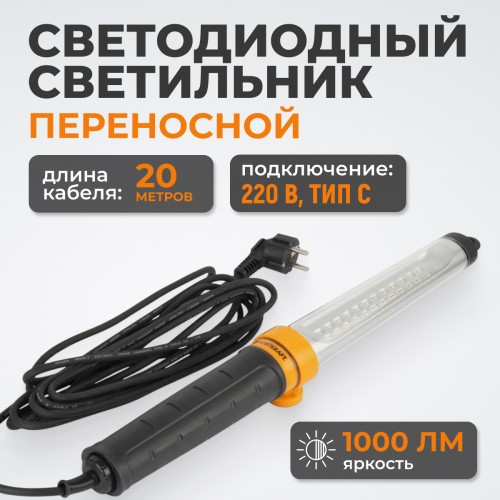 Переносной светильник WIEDERKRAFT WDK-WL2210020 (20м) представляет собой удлиненный светодиодный инструмент для освещения в условиях гаража, автосервиса или мастерской. Он подключается к сети 220 В и оснащен прочным корпусом с защитой от внешних воздействий, что делает его надежным помощником для ремонта и технических работ. Длинный кабель позволяет использовать светильник на расстоянии от розетки без дополнительных удлинителей.