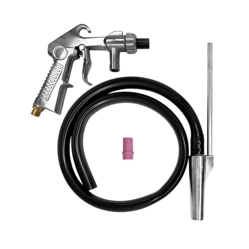 - Держатель для сопла: пистолет оборудован держателем, который позволяет легко установить керамическое или металлическое сопло, обеспечивая гибкость в выборе абразивного материала и оптимизацию процесса очистки под конкретные задачи.