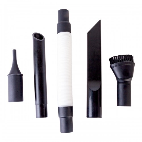 - Полный комплект аксессуаров: насадки (основная длинная, щелевая длинная и короткая, щеточная), гофрированный шланг, дефлектор, мешок для мусора, зажимное кольцо и штуцер.