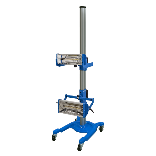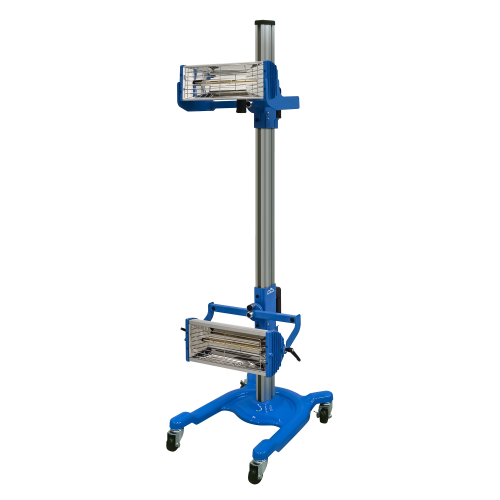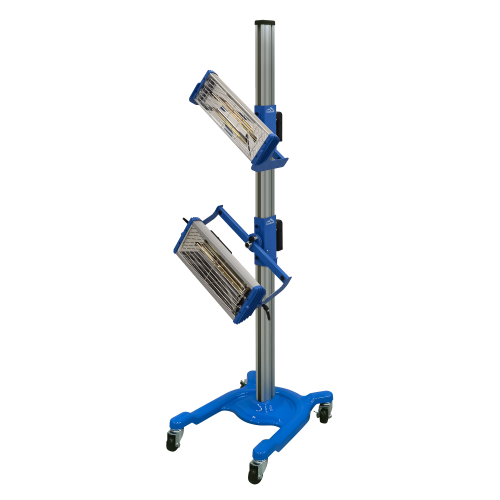 Мобильная установка Trommelberg IR2L Standard с 2 кассетами и излучателями в области коротковолнового инфракрасного диапазона для высушивания двухкомпонентных лакокрасочных и подготовительных материалов в процессе ремонта автомобильных покрытий.
