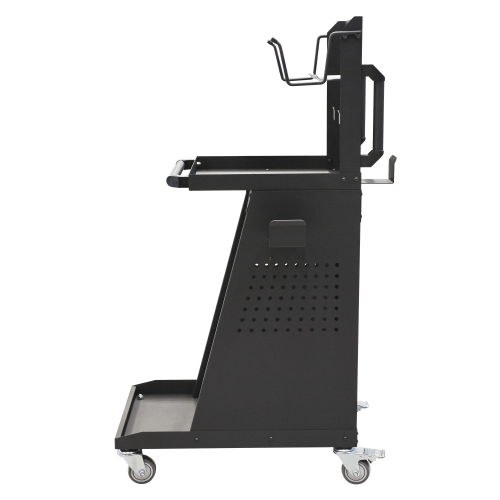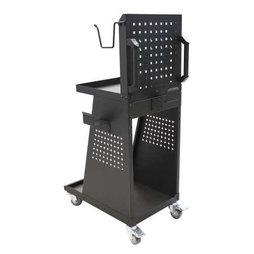 Тележка для пылесоса HUBERTH RP207502TR представляет собой удобную металлическую конструкцию для организации рабочего пространства на шлифовальных постах или в автосервисах. Она предназначена для размещения промышленного пылесоса, шлифовальных инструментов, аксессуаров и даже дополнительного оборудования вроде сварочных аппаратов или установок для прокачки тормозов. Тележка отличается компактностью, простотой сборки и мобильностью благодаря колесам с тормозами.