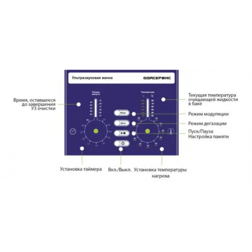 - Функция дегазации удаляет пузырьки воздуха из раствора перед запуском, повышая качество кавитации и эффективность очистки.