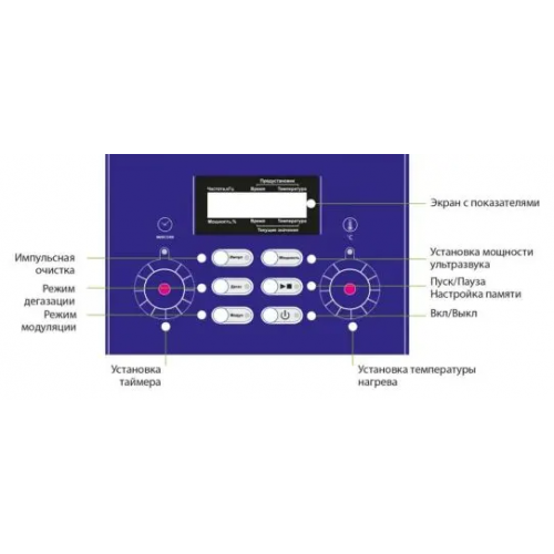 - Функция дегазации удаляет пузырьки воздуха из раствора перед запуском, повышая качество кавитации и эффективность очистки.