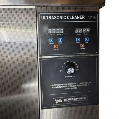Ультразвуковая ванна ОДА Сервис ODA-LQ1080 - промышленное устройство для эффективной очистки деталей, включая автомобильные форсунки. Рабочий объем ванны составляет 108 литров, частота ультразвука 40 кГц, что оптимально для удаления масляных, смолистых, жировых и карбоновых отложений. Ванна оснащена нагревом с максимальной температурой 80 °C и цифровым управлением, позволяющим выставлять время работы и мощность ультразвуковых излучателей.