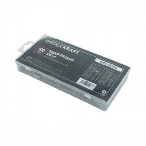 WDK-214055 – набор из 100 пружин различной жесткости и размеров. Отличный выбор для решения типовых задач. Использование качественных материалов и точность исполнения обеспечивает длительный срок службы и безупречную работу каждой пружины.