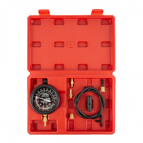 Набор WDK-214302 позволяет производить своевременную и точную диагностику давления вакуумного и топливного насоса. Благодаря наличию различных переходников, инструмент совместим с большинством марок, в том числе отечественных, и моделей автомобилей.