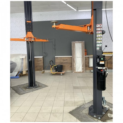 Управление стопорами с одной колонны экономит время при спуске автомобиля. Наличие концевого ограничителя подъема обеспечивает дополнительную безопасность во время эксплуатации подъемника.