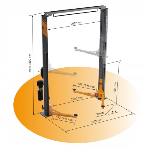Регулировка высоты подъемника от 3900 мм до 4100 мм позволяет установить подъемник в помещениях с ограниченной высотой потолков.