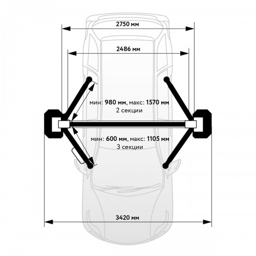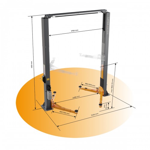 WDK-529 Подъемник двухстоечный с верхней синхронизацией 4 тонны, одност.разбл., 380В