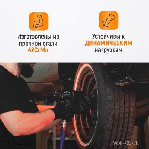 WDK-702-21L Головка торцевая ударная глубокая тонкостенная 1/2", 6 граней, 21 мм