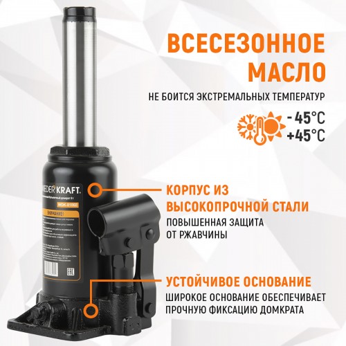 Механический реечный домкрат 60 WiederKraft WDK-80603 обладает прочным стальным корпусом, котор..
