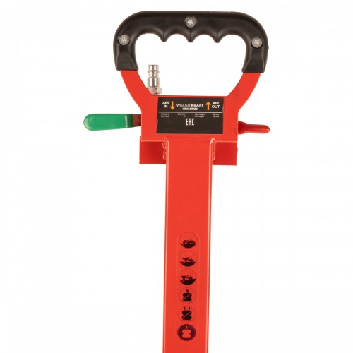 Пневматический подкатной домкрат WiederKaft WDK-81813D грузоподъемностью 5000 кг. Оснащен эргономичной рукояткой с регулировкой угла наклона и колесами для легкого перемещения в рабочем пространстве. Пневматический домкрат обеспечивает подъем легковых автомобилей, микроавтобусов и легких грузовиков без приложения физических усилий оператором. При этом, обеспечиваются плавность хода при подъеме (опускании) груза и точная регулировка высоты подъема.
