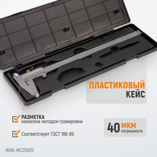 WDK-MC25005 Штангенциркуль нониусный 250 мм, 0,05 мм, тип I, ГОСТ 166-89, со сборной рамкой